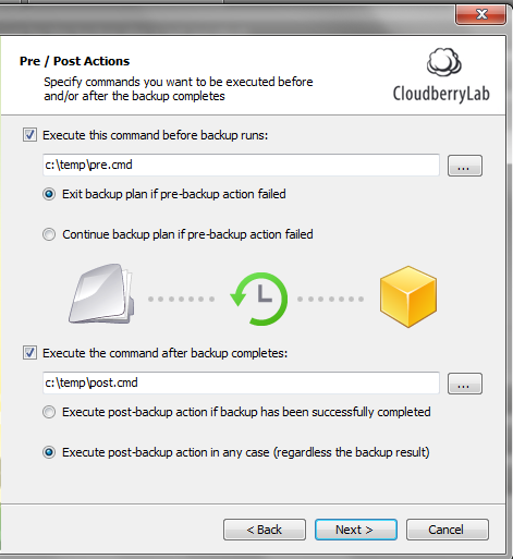 or continue backup in regardless of the results. you can also run the post-action only if a backup