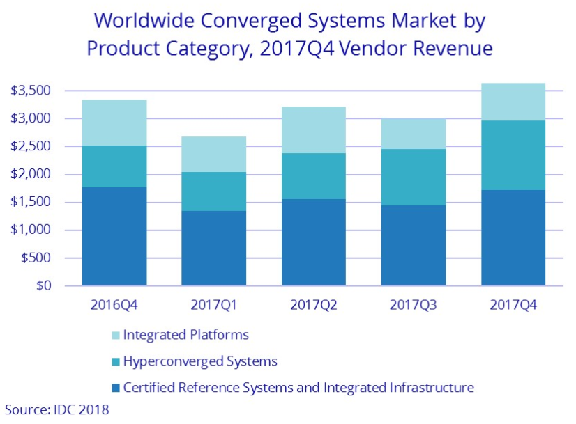 "The number of organizations deploying converged systems continued to expand through 2017," said Eric Sheppard, research vice president at IDC.